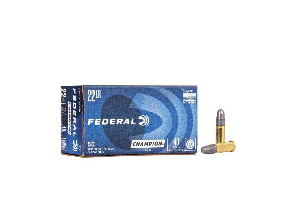 Malorážkové náboje .22 LR Federal Champion s vysokou úsťovou rychlostí střely 378 m/s (1240 FPS), jsou oblíbené pro svůj konzistentní, spolehlivý a velmi přesný výkon. Navíc jsou cenově dostupné.