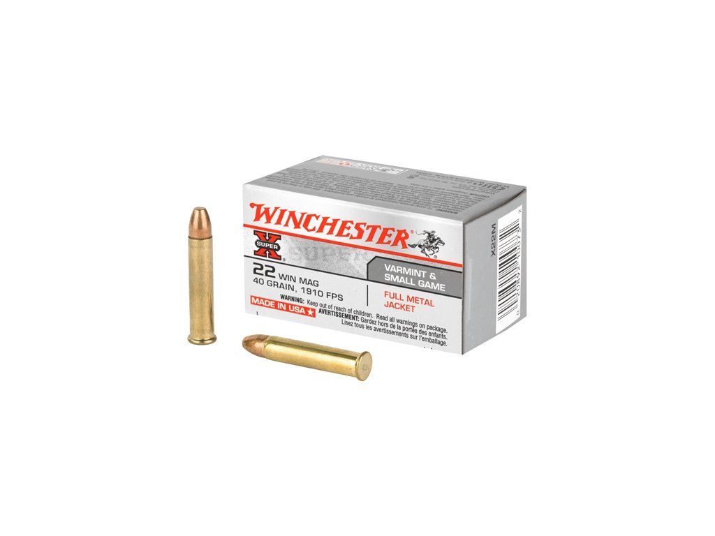 Náboj 22 WMR s okrajovým zápalem a celoplášťovou střelou.hmotnost střely: 2,6/40gr