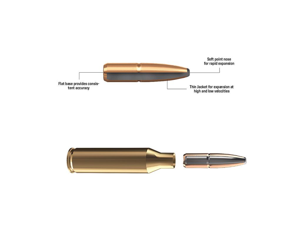 Novinka švédské muničky NORMA - náboj s univerzální střelou pro lov zvěře od srnčí až po středně těžkou vysokou a černou zvěř. Střela Norma Whitetail se vyznačuje velmi dobrou pevností spojení olověného jádra s mosazným pláštěm lisováním a fixačním kroužkem (prolisem), který pomáhá udržet zbytkovou hmotnost střely. Náboj Whitetail se vrací zpět ke klasice poloplášťových střel s měkkou špičkou. Střela tak vyniká velmi dobrou deformací a je vhodná na srnčí, lončáky, daňky, jelence.Jedná se o střelivo prémiové kvailty za velmi dobrou cenu.