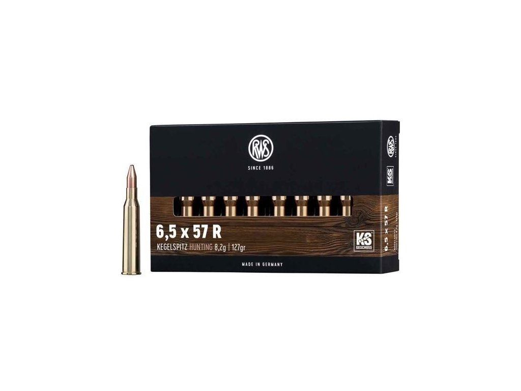 Kulový náboj 6,5 x 57R RWS KS s poloplášťovou střelou se střižnou hranou o hmotnnosti 8,2 g a sinoxidovou, neortuťovou zápalkou, která nezpůsobuje korozi hlavně.Velmi univerzální střela, použitelná jak na lehčí, tak i na těžkou zvěř, která se kontrolovaně rozkládá a předává současně energii tělu lovené zvěře, při zachování vysoké zůstatkové hmotnosti střely, která zaručuje průstřel. Tajemství spočívá v optimálním sladění síly pláště, která postupně narůstá od špičky k zádi střely a tvrdosti olověného jádra. Vnější tvar střely vytváří ideální předpoklady pro jedinečnou precizi střelby a minimalizuje odpor vzduchu.