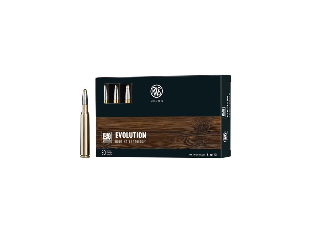 Výhodou náboje RWS EVO - EVOLUTION je jeho schopnost velké a zvláště zřetelné ranivosti a průbojnosti i přes velké silné kosti vitální zvěře a to i nebezpečné a tropické zvěře. Náboj RWS EVO - EVOLUTION je však vhodný i pro lov zvěře srnčí.Střela RWS EVO má speciální technologické spojení jádra s tombakovým pláštěm (Power-Bonding ) a tím dosahuje zbytkové hmotnosti téměř 100% i po průchodu kostí, tzn., že se netříští jako klasická poloplášťová střela a předá tak maximální množství energie a poskytuje tak vysokou šanci na okamžité a humánní usmrcení zvěře.