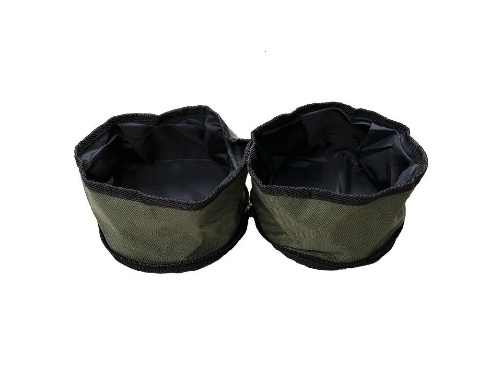 Cestovní skládací miska pro dva psy. Misky lze od sebe oddělit úplně.