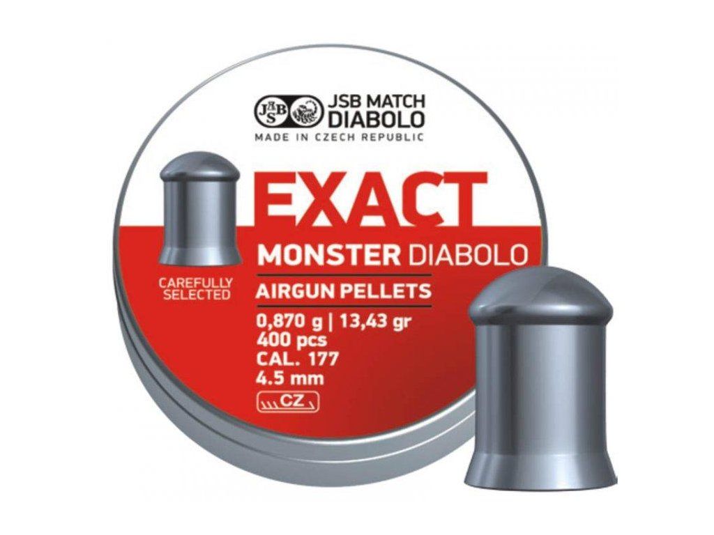 Diabolo JSB Exact Monster je velmi těžká střela vhodná pro nejsilnější vzduchovky. Lze tak dosáhnout hodně vysoké dopadové energie. Dalším specifikem této těžké střely je maximální stabilita za všech povětrnostních podmínek.Úsťová rychlost u zbraní 16J je 190 m/s.