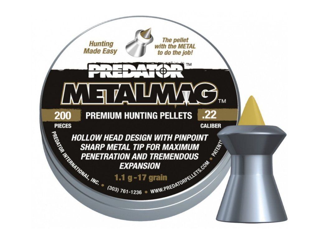 Tyto diabolky v ráži 5,5 spojují výhody diabolek s dutinou a špičatých diabolek typu Straton, s tím rozdílem, že špička diabolky Predator MetalMag je vyrobena z tvrdého kovu. Diabolky mají vysokou průraznost a jsou určeny k lovu a na destrukční střelbu.ráže: 5,5 mm / .22