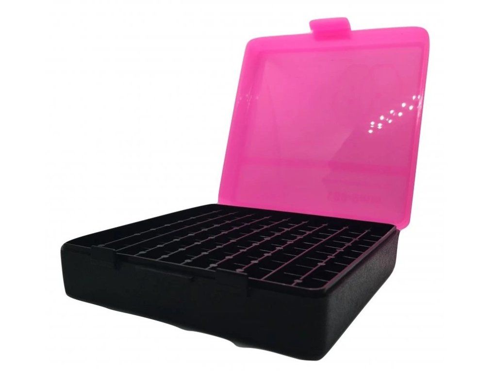 Plastová krabička na 100 ks nábojů ráže 9 mm s průhledným víčkem, díky němuž máte přehled o počtu vystřelených nábojů. Víčko lze od krabičky oodělit.Krabička je vhodná i pro ráže: