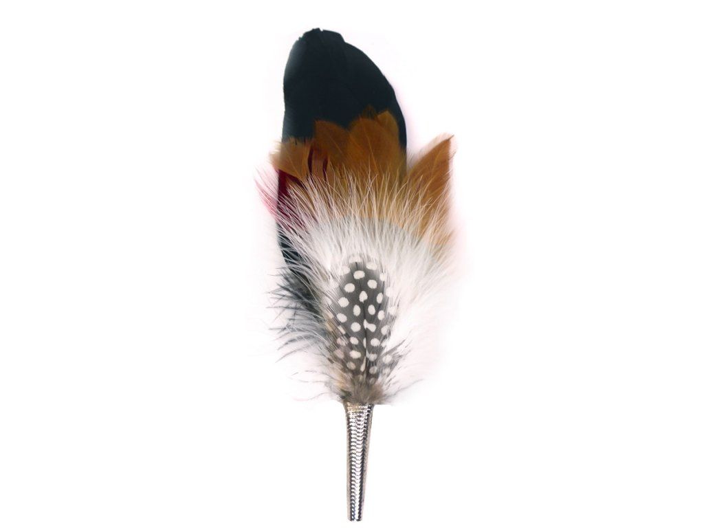 Krásně barevné pérko na klobouk z Francouzské produkce. Zapínání na zapínací špendlík s antikorozní úpravou.