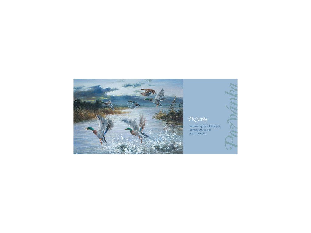 Pozvánka na křídovém papíru je z obrazu Václava Nesvětila. Z druhé strany jsou kolonky pro vyplnění podrobných informací k lovu včetně jména zvaného hosta.