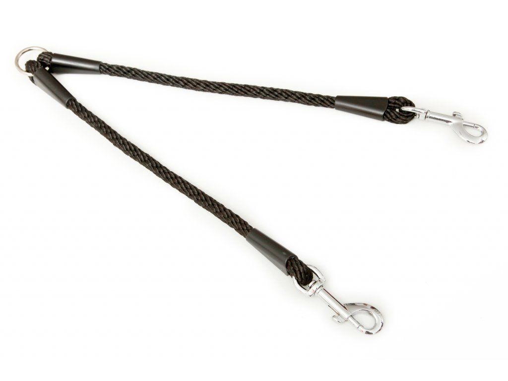 Rozdvojka k vodítku je vyrobená z pevného lana v designu spirála. Pro maximální pevnost jsou spoje rozdvojky vysokoteplotně svařené, prošité a překryté plastovou krytkou. Rozdvojka je vybavena svařovaným kroužkem pro uchycení vodítka a dvěmi karbinami pro připnutí k obojku. Je vhodná pro střední plemena psů.materiál: kulatý popruh
