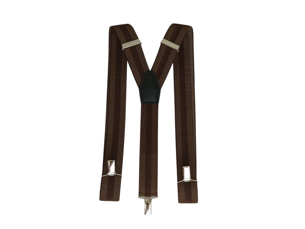 Jednobarevné hnědé šle s plastickým motivem.Podélné pruhy vytvořené rozdílnými vzory tkaní vytváří zajímavý plastický efekt a šle tak získávají luxusní design.
