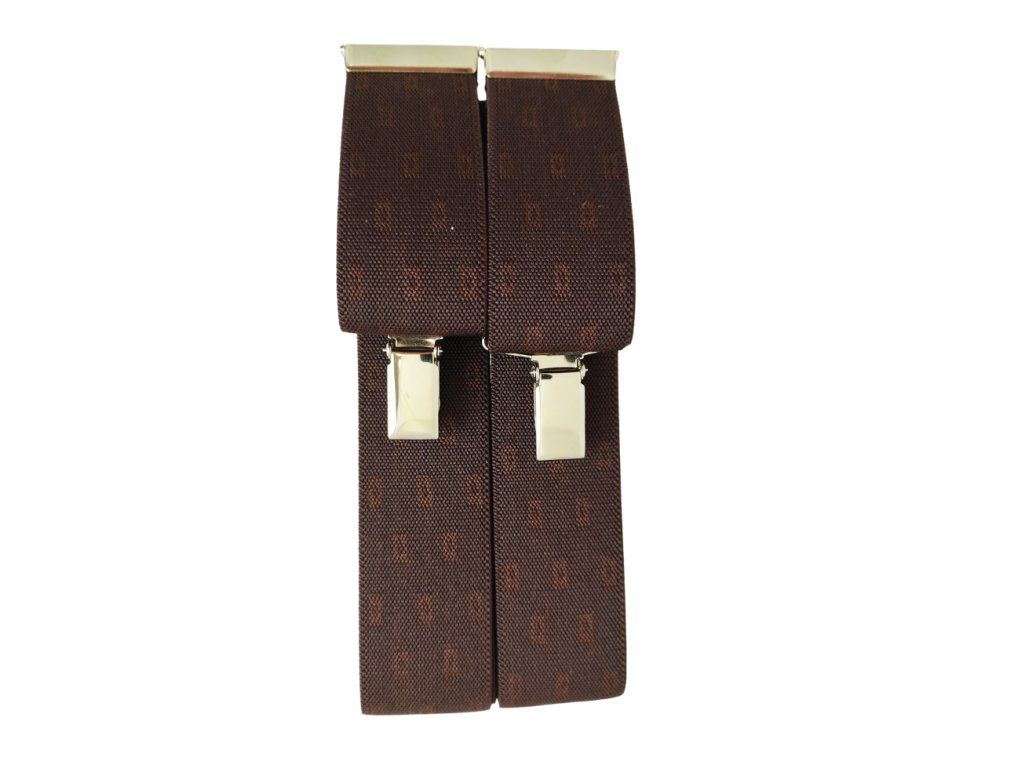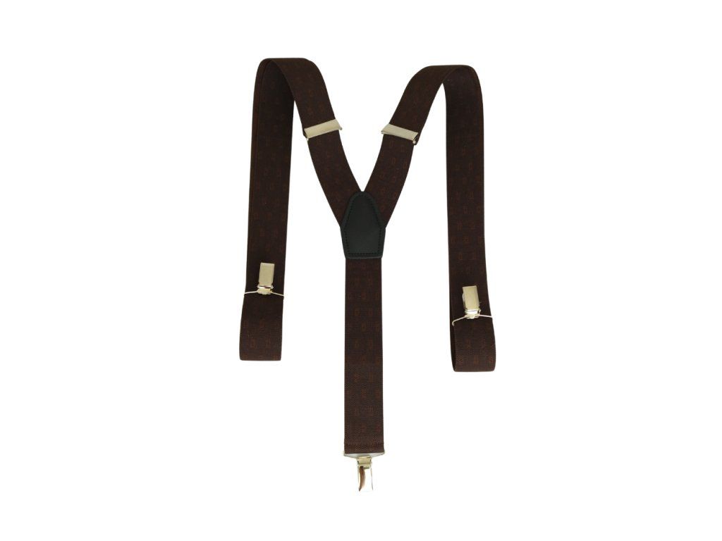 Hnědé šle s téměř neviditelným jemným potiskem čtverečků v jiném odstínu hnědé barvy.Kšandy mají univerzální využití. Lze je nosit k běžnému oblečení do zaměstnání, k loveckým kalhotám, případně i ke společenským událostem.