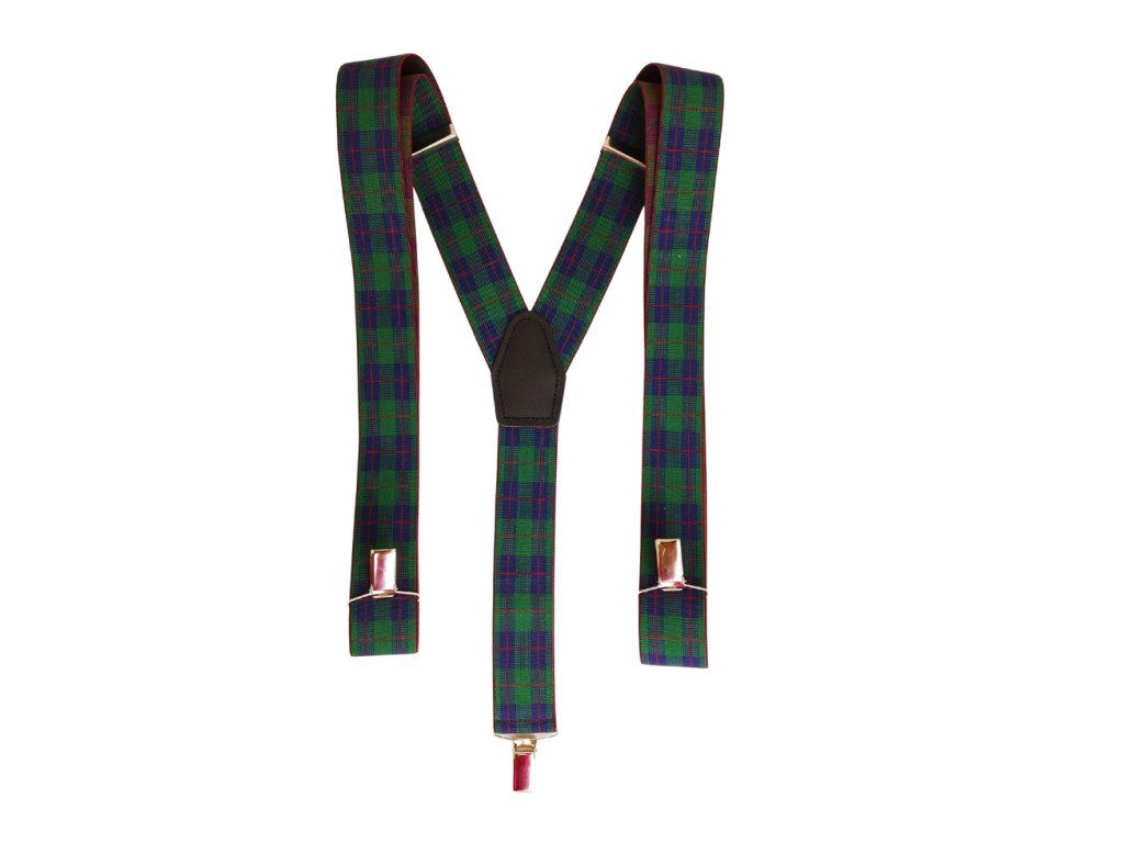 Šle v originálním designu - zeleno-modré káro s jemnými červenými linkami.Univerzální nadčasový a zároveň atraktivní vzor se hodí ke sportovnímu i sportovně-elegantnímu outfitu. Použití těchto šlí je téměř univerzální. Hodí se i k loveckému oblečení.