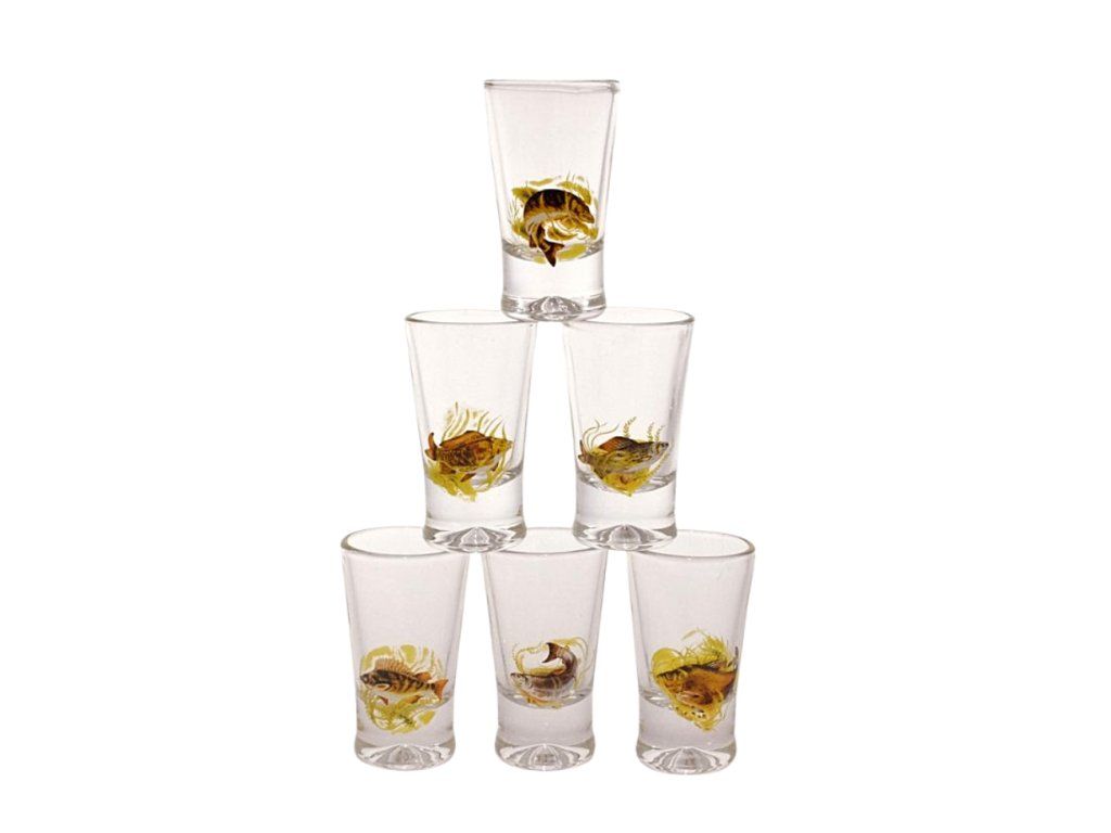 Sada 6ti kusů štamprlat s rybářským motivem.