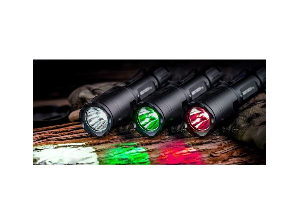 Lovecká sada s taktickou svítilnou T53, držákem na zbraň, dálkovým spínačem a nabíjecí Li-ion baterií 18650.Svítilnu NexTORCH T53 lze používat samostatně nebo jako svítilnu upevněnou montzáží k puškohledu. Její velká výhoda je možnost přepnutí z bílého světla na zelené, nebo červené. Zelené světlo se v noci jeví jasnější a mnoho lovců ho používá, aby méně plašili zvěř v lese. Naopak vetšina zvířat hůře vnímá červené barevné spektrum, což dává lovci výhodu.